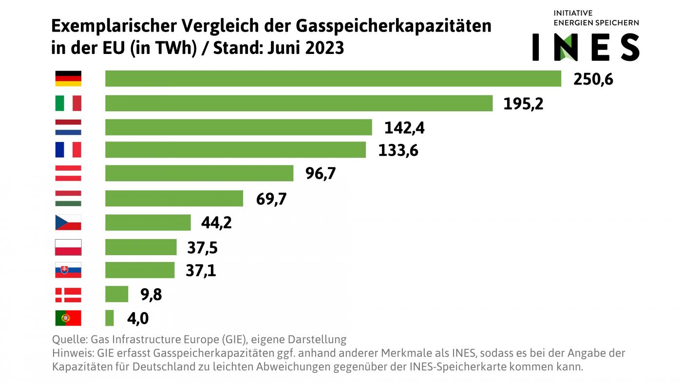 A comprehensive overview of the daily capacities of gas storage facilities in Germany including their locations can be found on the INES Storage Map.