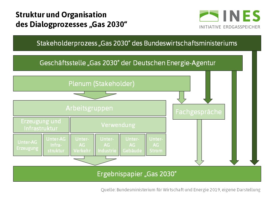 Der vom Bundeswirtschaftsministerium ins Leben gerufene Dialogprozess „Gas 2030“ ist ein Forum, das es dem Ministerium erlauben sollte, den Energieträger Gas aus verschiedenen Perspektiven in den Blick zu nehmen. Dabei sollten insbesondere die mittel- und langfristigen Perspektiven von Gas für die deutsche Energiewirtschaft erörtert werden.